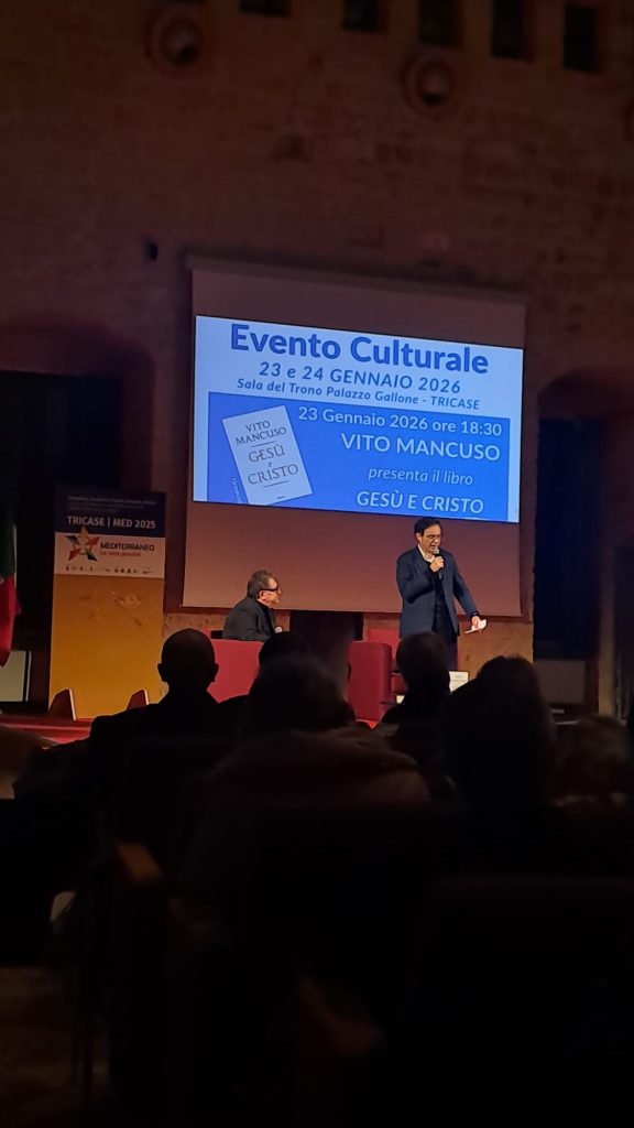 Venerdì 23 gennaio 2026 presso la Sala del Trono di Palazzo Gallone a Tricase è stato presentato il volume, edito da Garzanti, e il giorno successivo si è tenuto un confronto tra mons. Vito Angiuli, Vescovo di Ugento – Santa Maria di Leuca, e Vito Mancuso aperto alla cittadinanza. Moderatore Antonio Bergamo, direttore dell’Istituto metropolitano “Don Tonino Bello”. A introdurre i lavori, in entrambe le occasioni, Mimmo Turco, delegato diocesano dell’Università Cattolica.