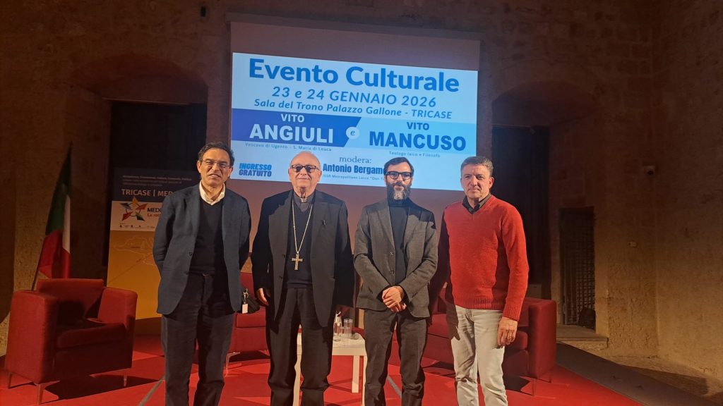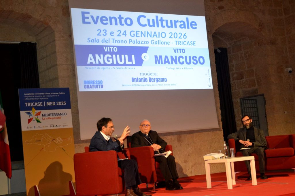 L’evento è stato promosso dall’Assessorato alla Cultura della città di Tricase, Mediterraneo-Le rotte possibili, Consulta diocesana delle Aggregazioni Laicali, Associazione Amici dell’Università Cattolica, con il patrocinio della Pia Fondazione “Card. G. Panico”, UnitelmaSapienza, Istituto superiore di Scienze religiose metropolitano “Don Tonino Bello”. Si è trattato di una preziosa occasione di dialogo e confronto che ha riunito istituzioni, università, rappresentanti religiosi e protagonisti della cultura.