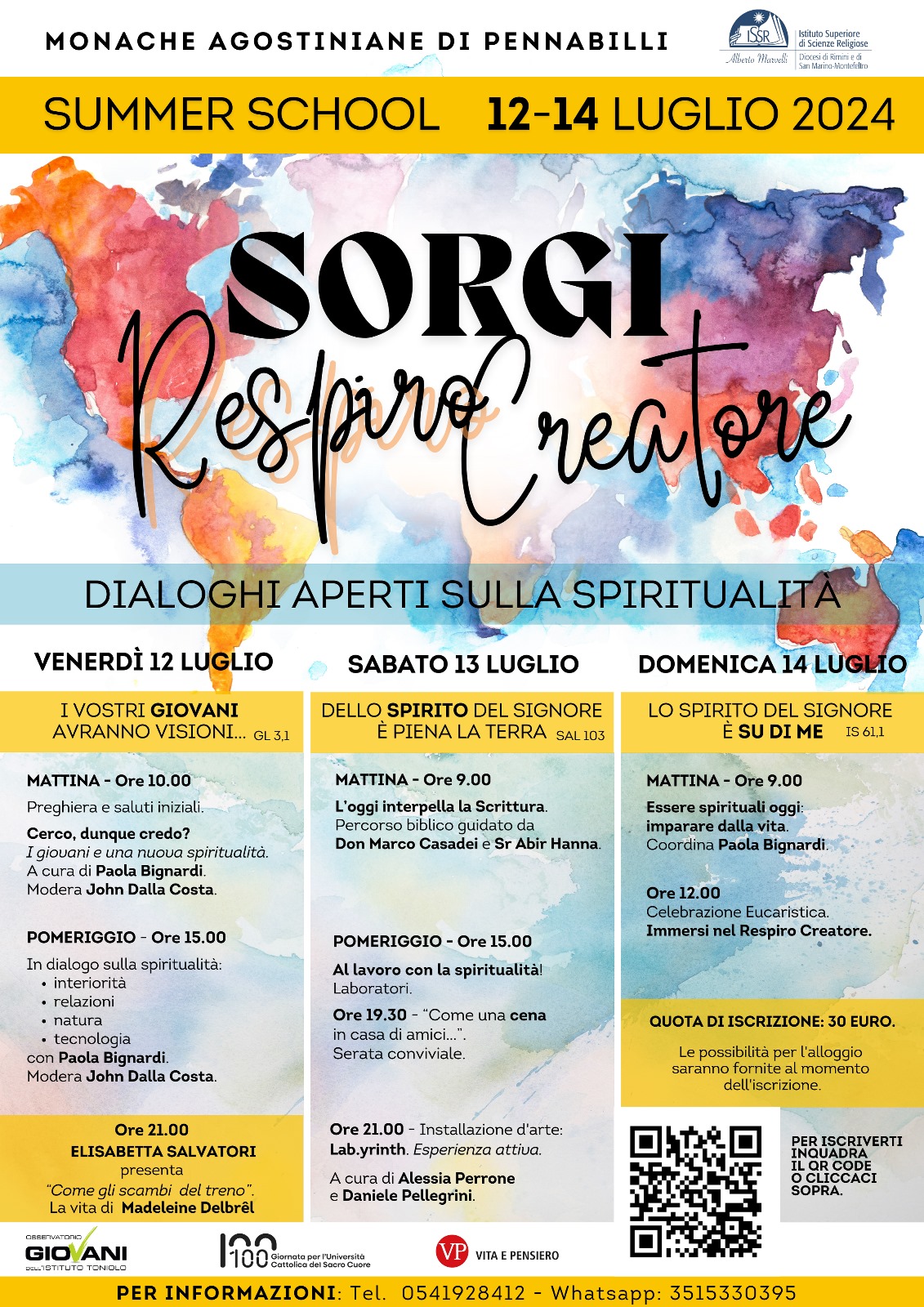 Dal 12 al 14 luglio 2024 la comunità monastica di Pennabilli invita ad un tempo di riflessione, condivisione e preghiera per vivere dialoghi aperti sulla spiritualità. “Sorgi, respiro creatore” è il tema della summer school dedicata agli insegnanti di religione, agli operatori pastorali e ai giovani interessati.